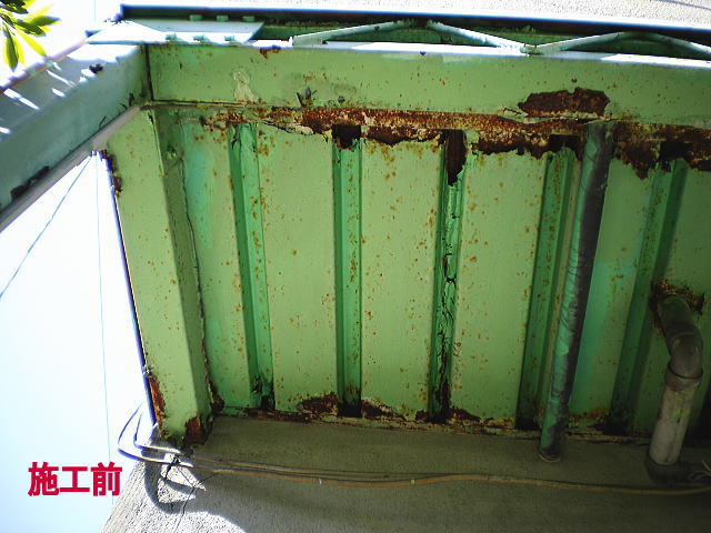 アパートのベランダ床下腐食部分を溶接補強し、新しい鉄骨で耐震補強工事を施しました。